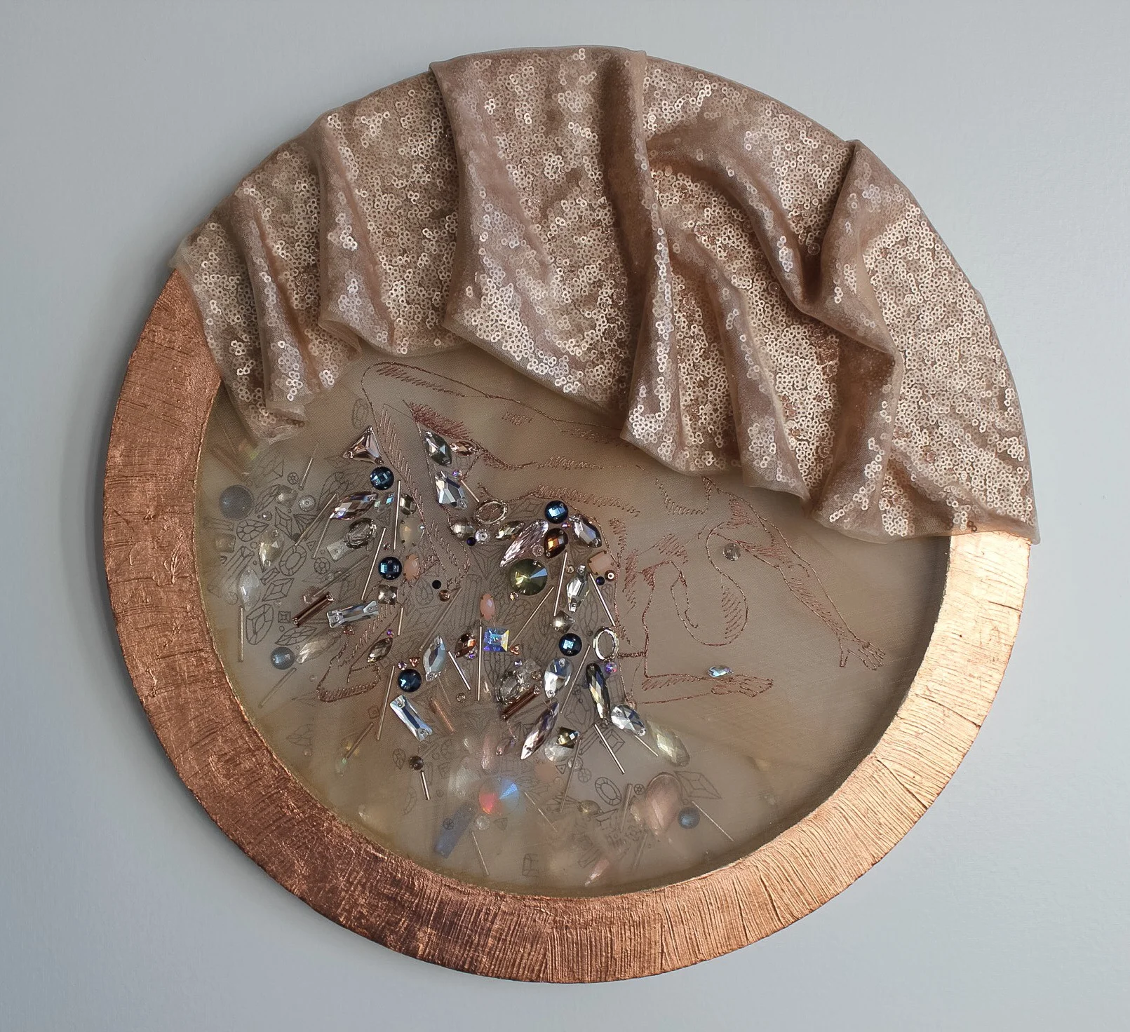 Visiting an artist’s studio is a precious gift, and visiting the studio of fiber artist Michael-Birch Pierce is a special kind of awesome. His studio, in an old warehouse on Mayo Island in the middle of the falls of the James River in Richmond, Virginia, is a sensuous experience. Shimmering crystals and sequins spill from every surface, and sumptuous fur, velvet and lace are piled in every corner. Michael-Birch uses these materials in his work, drawing on his background in fashion design to exquisitely craft sculptural pieces that challenge to viewer to think deeply about the identity that we wear. At the same time, Michael-Birch recognizes the courage of vulnerability as a way to claim who we are and connect authentically with others.