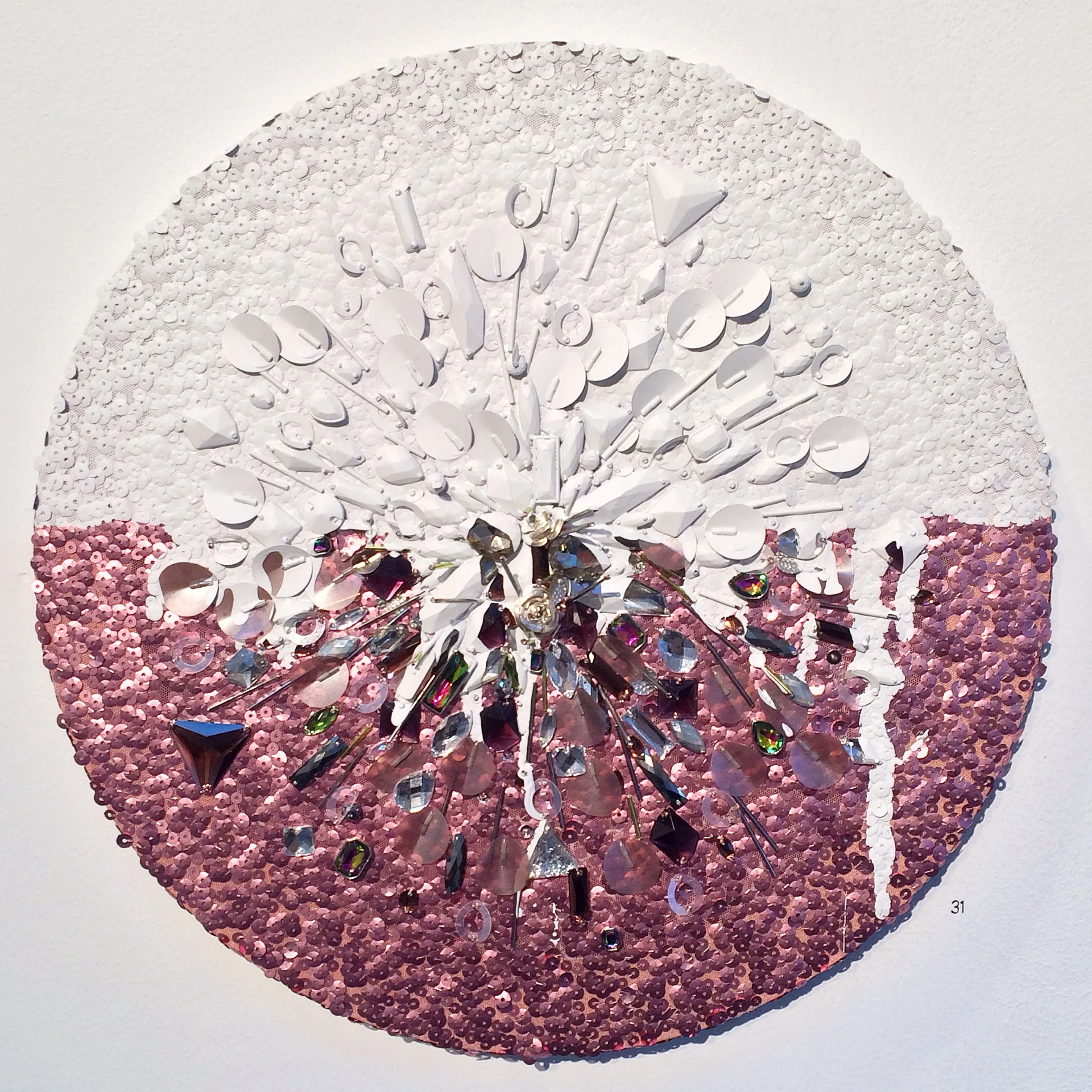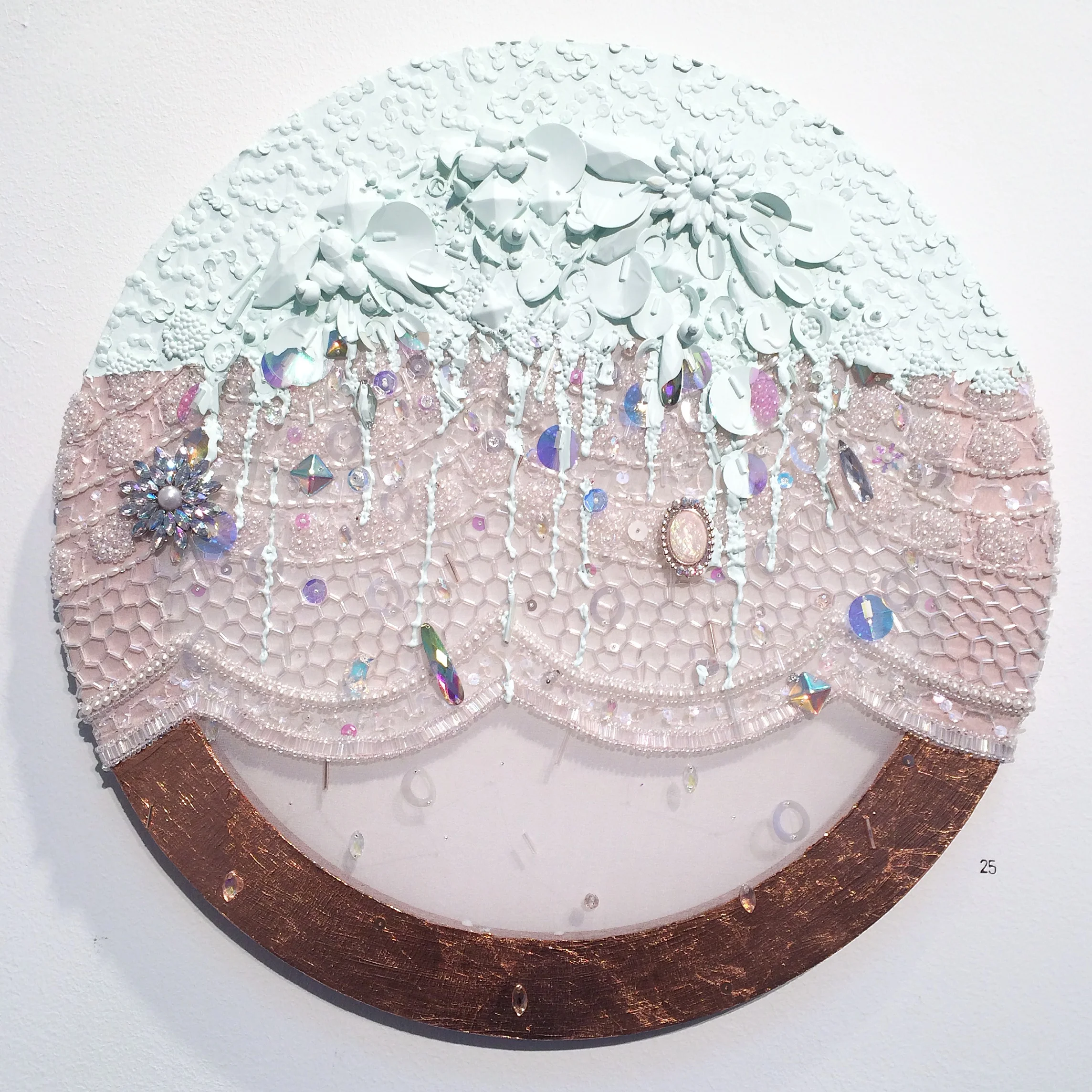 “I started the think about the artificiality of the materials that I am using. . . . Taking things that are all about artifice, all about building a lie . . . and looking at those as a way to build intimate moments. . . . I really want to build a whole crazy world out of these rhinestones that, when I’m looking at them, I’m thinking about them in the way that Frank Gehry would build a structure out of aluminum for a museum. . . . What would it be like if I was walking around inside these rhinestones?””